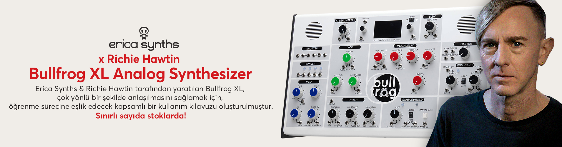 VCO, VCF, VCA/Delay, 2 x Looping Envelope Generator, Sample & Hold, PWM, Clock Divider, 6 Voicecard, 5-pin MIDI DIN In, USB ve PSU ile Yarı Modüler Analog Subtractive Synthesizer
