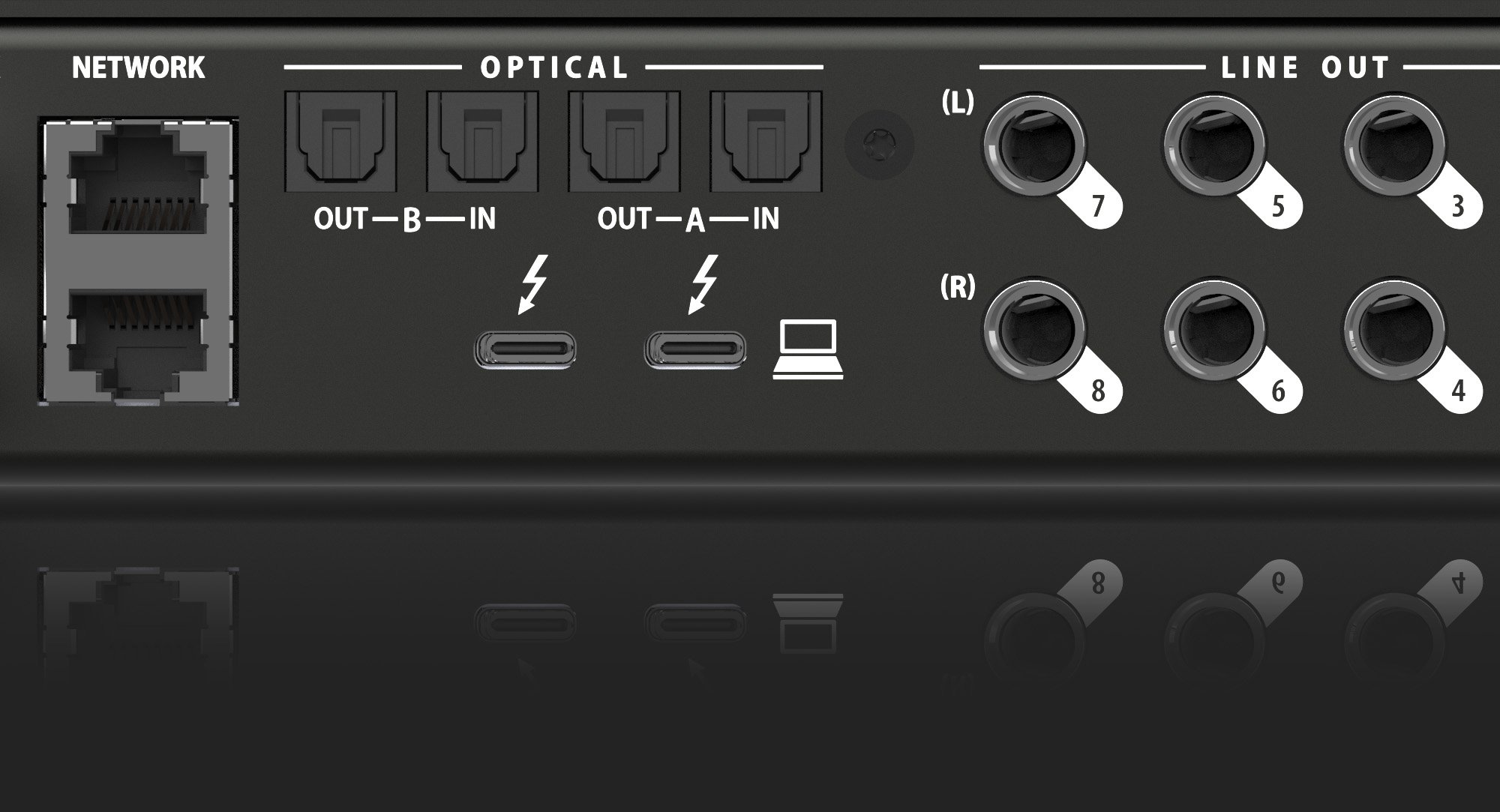 • 2 bank (8 kanal) S/MUX optical I/O (2x sample rate)