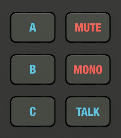Ön panelde A/B/C hoparlör seçimi ve talkback butonu bulunur. Üç farklı monitör seti arasında anında geçiş yapabilir, kayıt esnasında konuşma mikrofonunu etkinleştirebilirsiniz.