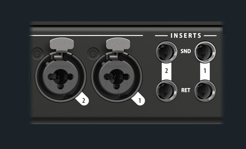 • Kanal 1-2 üzerinde bağımsız balanced send/return insert bağlantısı